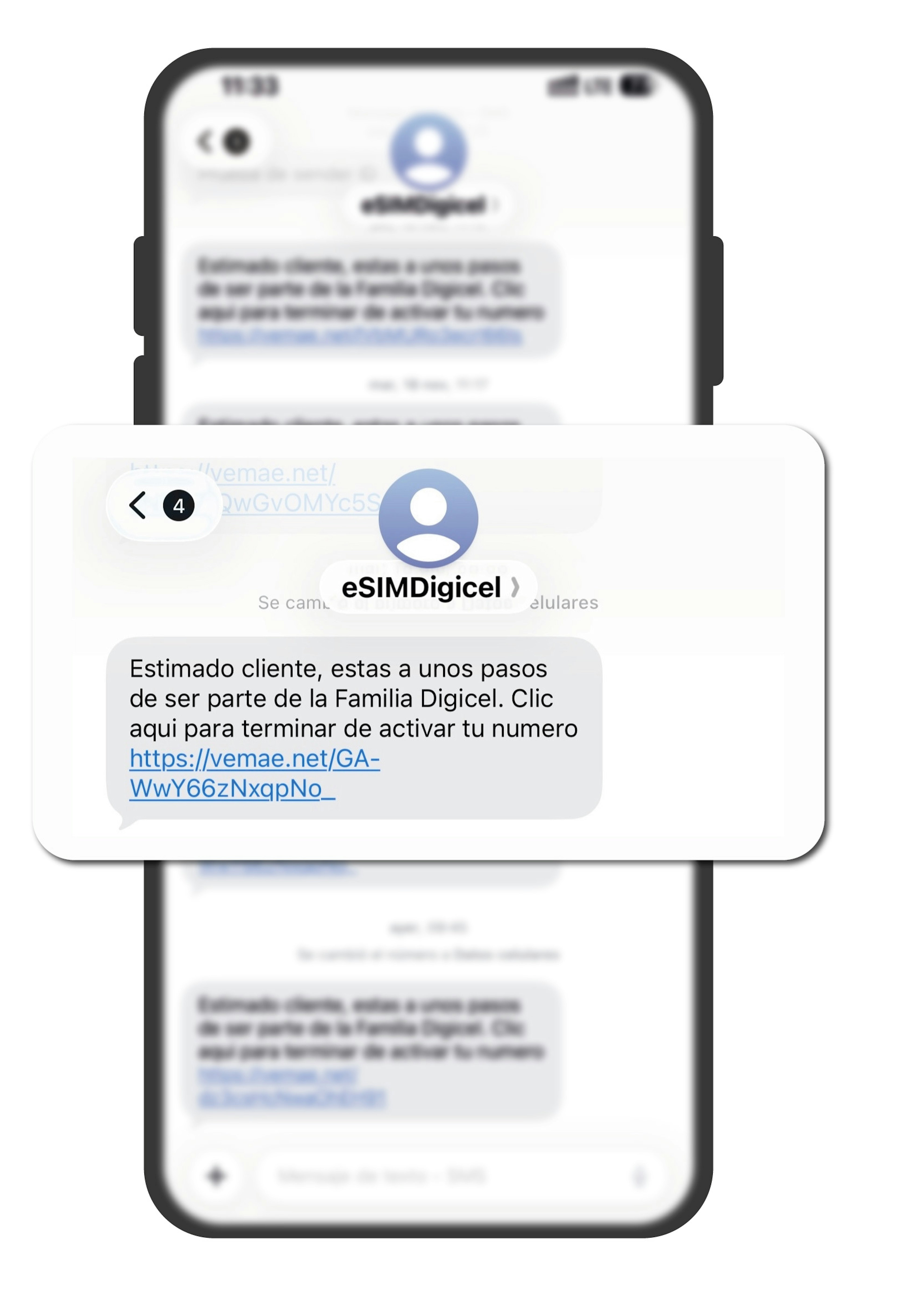 Recibirás 2 mensajes de bienvenida y un mensaje con el link para comprar tu primer paquete Digicel desde el sender +503 7760 2056.